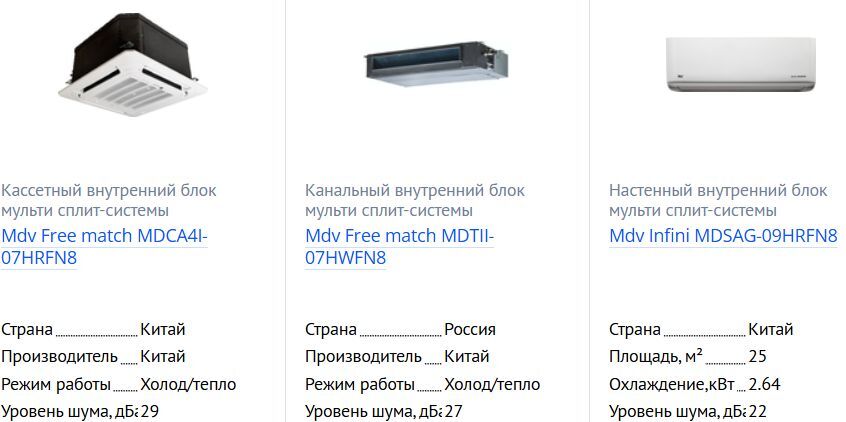 Независимая настройка рабочих параметров каждого внутреннего блока