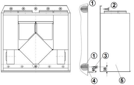 1 – Штифт; 2 – Шуруп с полукруглой головкой; 3 – Шуруп с потайной головкой; 4 – Подвес; 5 – Установка.